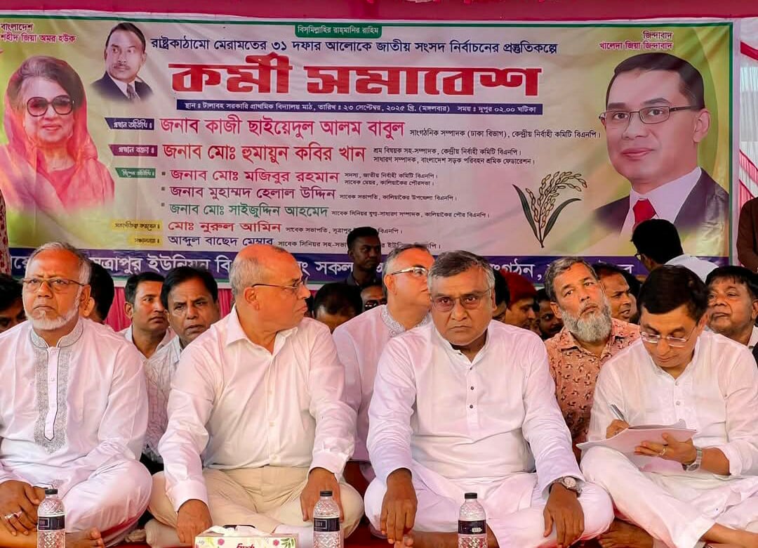 গাজীপুরের কালিয়াকৈরে কেন্দ্রীয় বিএনপি কর্মসূচি আওতায় রাষ্ট্রকাঠামো মেরামতের ৩১ দফার আলোকে আসন্ন জাতীয় সংসদ নির্বাচনের প্রস্তুতিকল্পে কর্মী সমাবেশ অনুষ্ঠিত হয়।