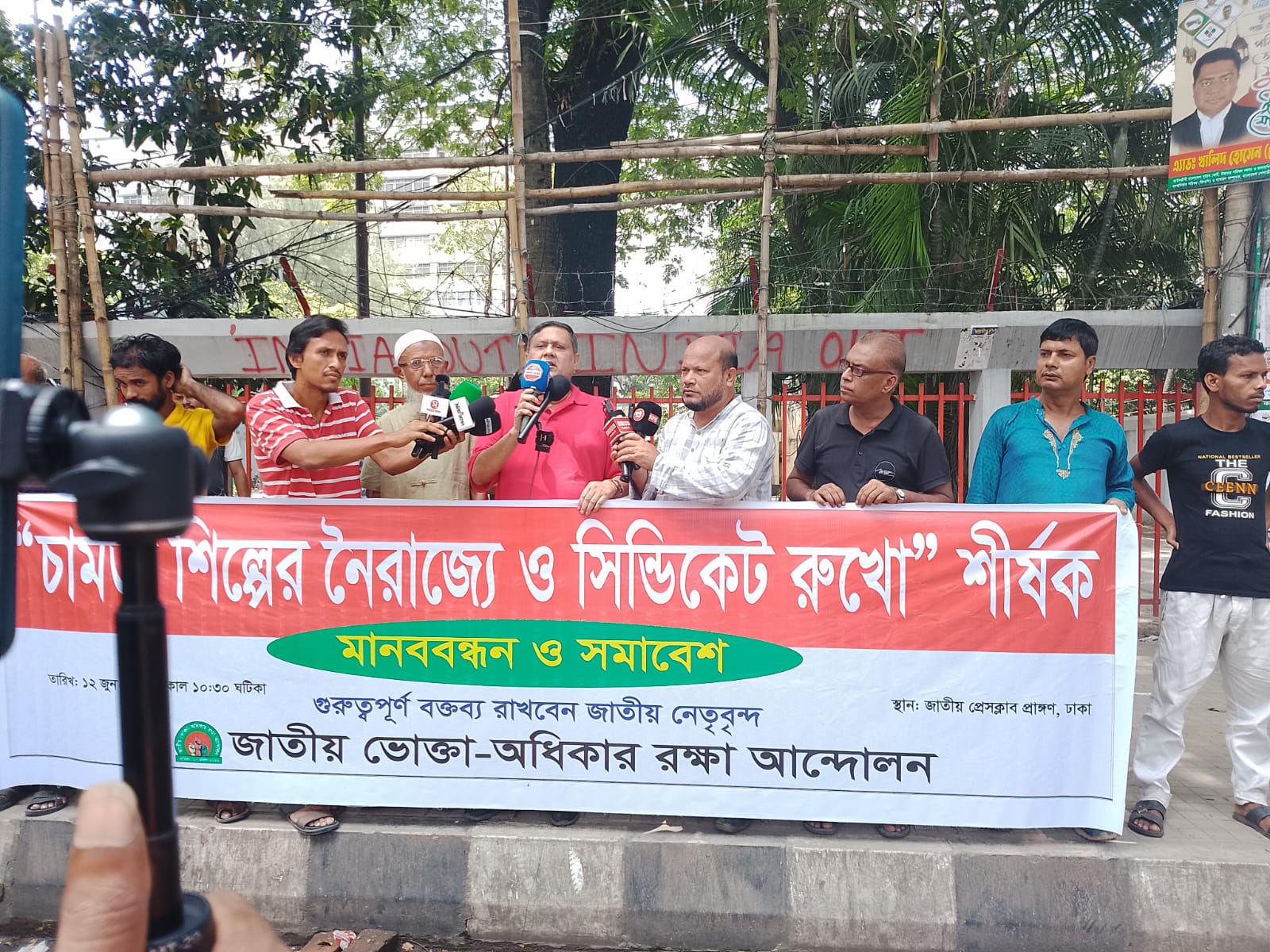 গতকাল ১২ জুন২০২৫ বেলা ১১ ঘটিকায় জাতীয় প্রেসক্লাব প্রাঙ্গনে জাতীয় ভোক্তা অধিকার রক্ষা আন্দোলন এর প্রতিষ্ঠাতা য়োরম্যান চেয়ারম্যান মুহাম্মদ আতা উল্লাহ খান মানববন্ধন ও সমাবেশে একথা বলেন।