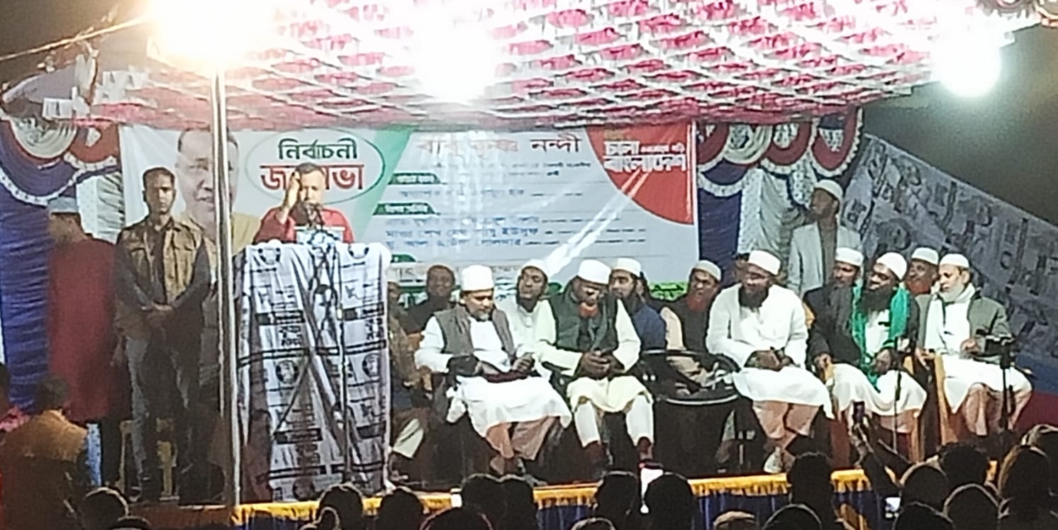জনসভায় প্রধান অতিথি হিসেবে বক্তব্য রাখেন ১১ দলীয় জোট সমর্থিত ও বাংলাদেশ জামায়াতে ইসলামীর খুলনা-১ আসনের দাঁড়িপাল্লা প্রতীকের সংসদ সদস্য প্রার্থী বাবু কৃষ্ণ নন্দী।