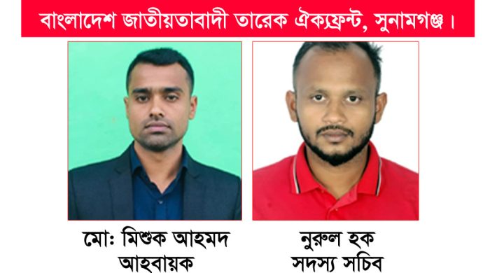 একে মিলন সুনামগঞ্জ থেকেঃ বাংলাদেশ জাতীয়তাবাদী তারেক ঐক্যফ্রন্টের সুনামগঞ্জ জেলা আহব্বায়ক কমিটি অনুমোদন করা হয়েছে। কমিটিতে মোঃ মিশুক আহমদকে আহব্বায়ক ও মোঃ নুরুল হককে সদস্য সচিব করে ২১ সদস্যের