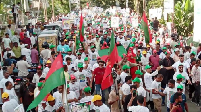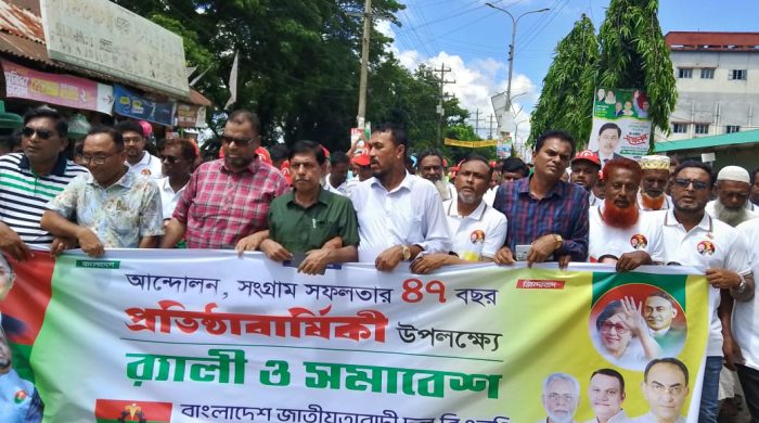 মোঃ আল আমিন হোসেনপুর (কিশোরগঞ্জ) প্রতিনিধি: বাংলাদেশ জাতীয়তাবাদীদলের প্রতিষ্ঠাবার্ষিকী উদযাপন উপলক্ষে কিশোরগঞ্জের হোসেনপুর উপজেলা বিএনপি ও পৌর বিএনপিসহ সকল অঙ্গসংগঠনের অংশগ্রহণে বর্ণাঢ্য র‌্যালী ও সমাবেশ অনুষ্ঠিত হয়েছে। বুধবার (৩