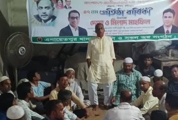ইছাহাক আলী, এনায়েতপুর (সিরাজগঞ্জ) থেকে: এনায়েতপুরে বাংলাদেশ জাতীয়তাবাদী দল (বিএনপি) এর ৪৭তম প্রতিষ্ঠাবার্ষিকী উপলক্ষে আলোচনা সভা ও দোয়া মাহফিল অনুষ্ঠিত হয়েছে। গত বুধবার সকালে এনায়েতপুর থানা বিএনপির উদ্যোগে এনায়েতপুর হাটে read more