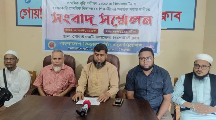 গোয়াইনঘাট (সিলেট) প্রতিনিধি: প্রাথমিক বৃত্তি পরীক্ষা-২০২৫ এ কিন্ডারগার্টেন ও বেসরকারি প্রাথমিক বিদ্যালয়ের কোমলমতি শিক্ষার্থীদের অংশগ্রহণের সুযোগ প্রদানের দাবি জানিয়েছে বাংলাদেশ কিন্ডারগার্টেন এসোসিয়েশন, গোয়াইনঘাট উপজেলা শাখা। মঙ্গলবার (১২ আগস্ট) দুপুরে