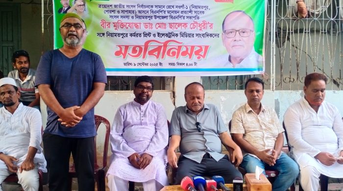 শাহ্ ফুজায়েল আহমদ বিশেষ প্রতিনিধিঃ আগামী জাতীয় সংসদ নির্বাচন সামনে রেখে সাংবাদিকদের সাথে মতবিনিময় করেছেন সুনামগঞ্জ- ৩ (জগন্নাথপুর-শান্তিগঞ্জ) আসনে খেলাফত মজলিস মনোনীত সংসদ সদস্য প্রার্থী হাফেজ শেখ মুশতাক আহমদ।