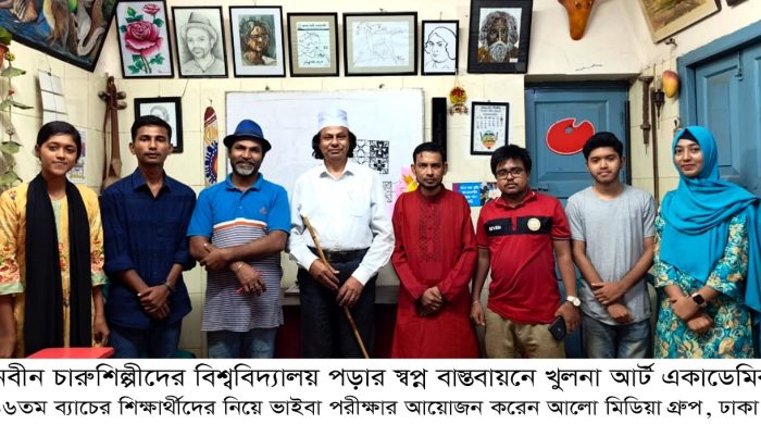 নিজস্ব প্রতিবেদক: নবীন চারুশিল্পীদের বিশ্ববিদ্যালয় পড়ার স্বপ্ন বাস্তবায়নে খুলনা আর্ট একাডেমিতে অনুষ্ঠিত হলো ভাইভা পরীক্ষা। প্রতিষ্ঠানের ১৬তম ব্যাচের শিক্ষার্থীরা ভবিষ্যতে চিত্রশিল্পী হয়ে দেশ গড়ার কাজে নিয়োজিত হবে এমন প্রত্যাশা