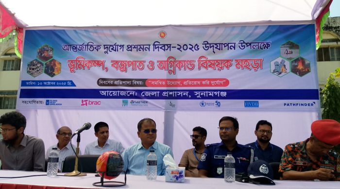 সুনামগঞ্জ প্রতিনিধি: ‘সমন্বিত উদ্যোগ, প্রতিরোধ করি দুর্যোগ’ প্রতিপাদ্যে জেলা প্রশাসনের আয়োজনে ও এফআইভিডিবি উইমেন লেড ক্লাইমেট রেজিলিয়েন্স প্রকল্পের সহযোগিতায় সুনামগঞ্জে আন্তর্জাতিক দুর্যোগ প্রশমন দিবস পালিত হয়েছে। এ উপলক্ষে সোমবার