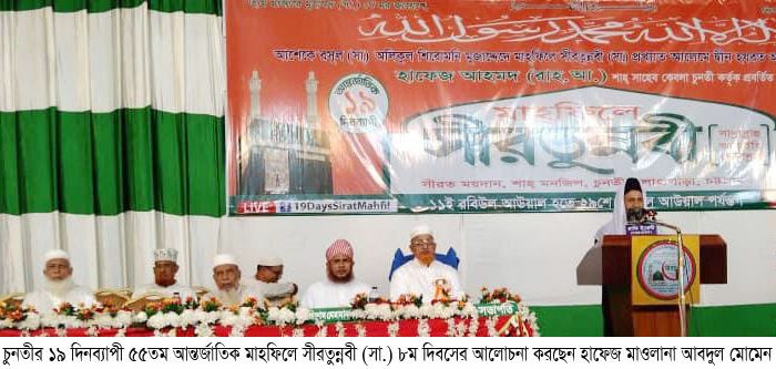 মোহাম্মদ আব্বাস উদ্দিন, চট্টগ্রাম  আশেকে রাসুল (দ.) হযরত মাওলানা হাফেজ আহমদ শাহ্ সাহেব কেবলা চুনতী কর্তৃক প্রবর্তিত ১৯ দিনব্যাপী ৫৫তম আন্তর্জাতিক মাহফিলে সীরতুন্নবী (সা.) চট্টগ্রাম লোহাগাড়া চুনতীস্থ শাহ্ মনজিল
